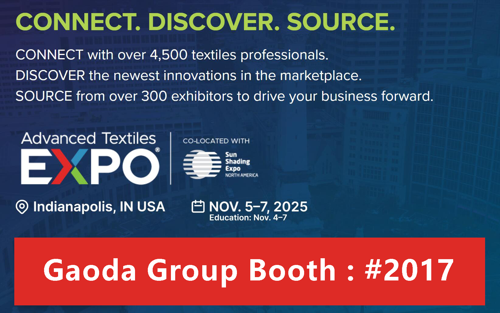 A Gaoda Group részt vesz az AT Expo 2025 kiállításon, amelyet Indianapolisban tartanak november 5. és november 7. között. A nagy teljesítményű ipari szövetek világelső gyártójaként a Gaoda Group bemutatja a PVC késbevonó anyagok, hálós anyagok, nagy teljesítményű lánckötő ipari szövetek és környezetbarát újrahasznosított valódi bőrtermékek teljes választékát.